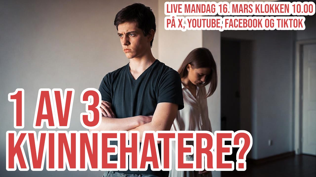 I morgen, mandag 16. mars klokken 10.00, sendes Ytringsforum live på Twitch, YouTube, TikTok, Facebook og X. Dagens hovedsak, som du kan lese om nederst, er at TV2 og Klassekampen villedet sine lesere da de hevdet at 1 av 3 norske menn mener kvinner bør adlyde menn.